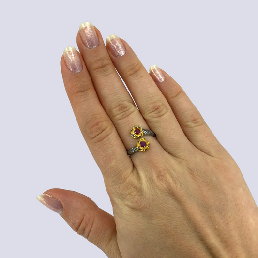 Silver Ring With Ruby, Size 8 (Adjustable)