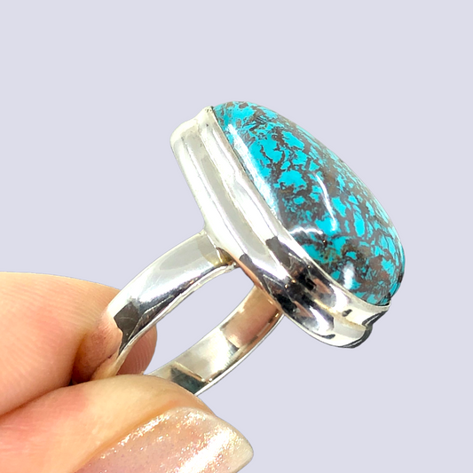 Sterling Silver Ring With Azurite Chrysocolla, Size 7