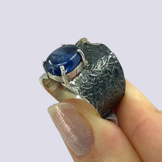 925 Oxidized Silver Ring With Kyanite, Size 8