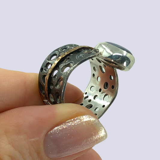 925 Oxidized Silver Ring With Labradorite, Size 8