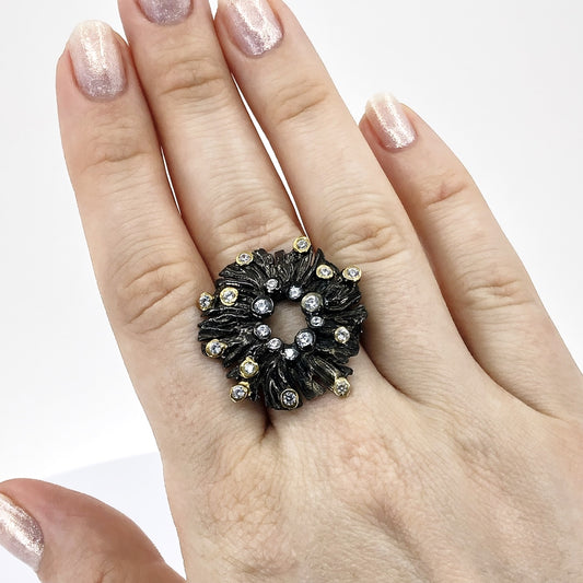Oxidized 925 Sterling Silver Ring With Black Star Sapphire, Size 7.5