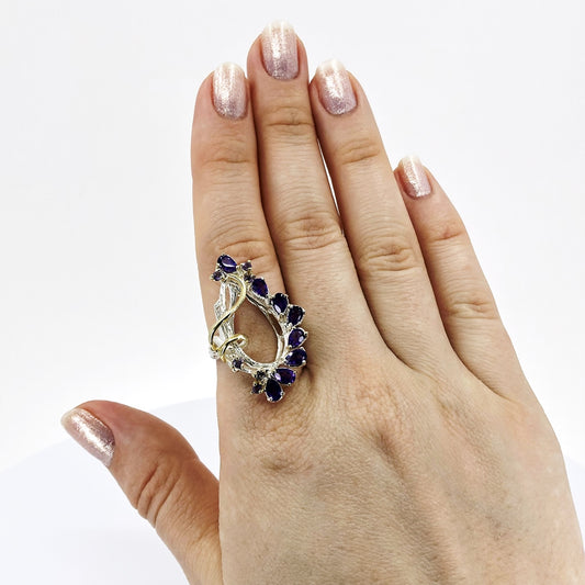 Petal-Shaped Silver Ring With Amethyst, Size 8