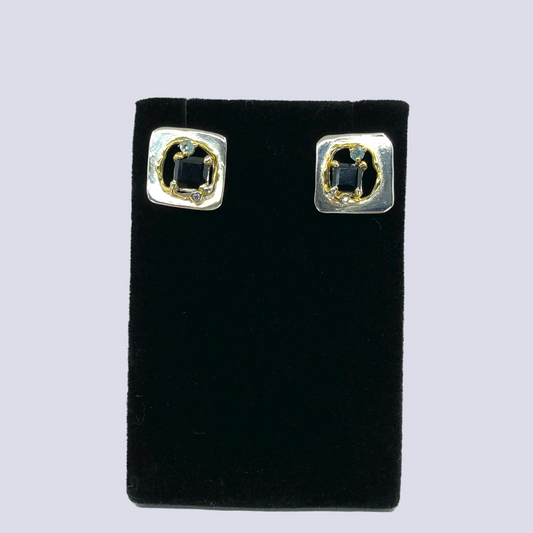 Solid 14K Yellow Gold Stud Earrings Inlaid With Blue Topaz