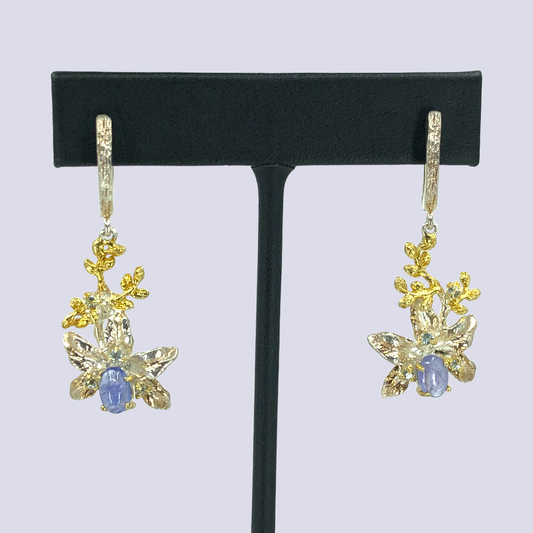 Silver Dangle Earrings With Tanzanite And Blue Topaz