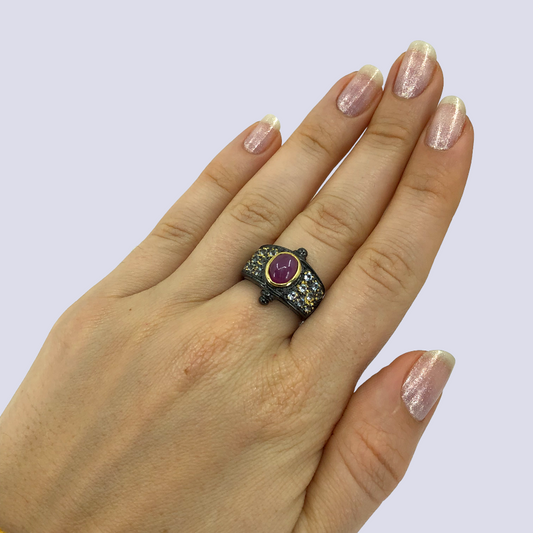 Ruby And Blue Topaz Sterling Silver Ring, Size 7.25
