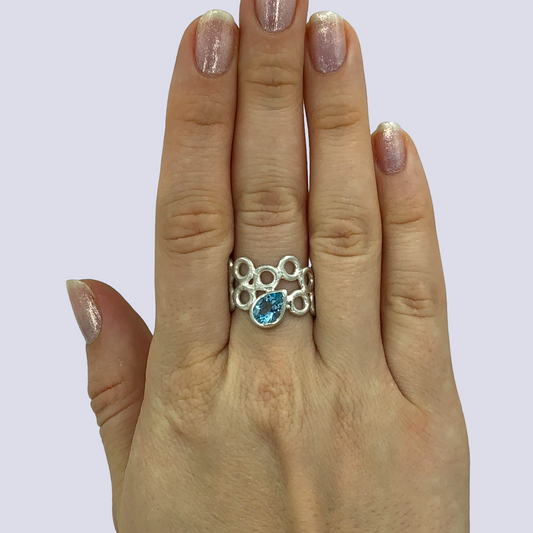 Frosted Silver Ring With Blue Topaz, Size 8