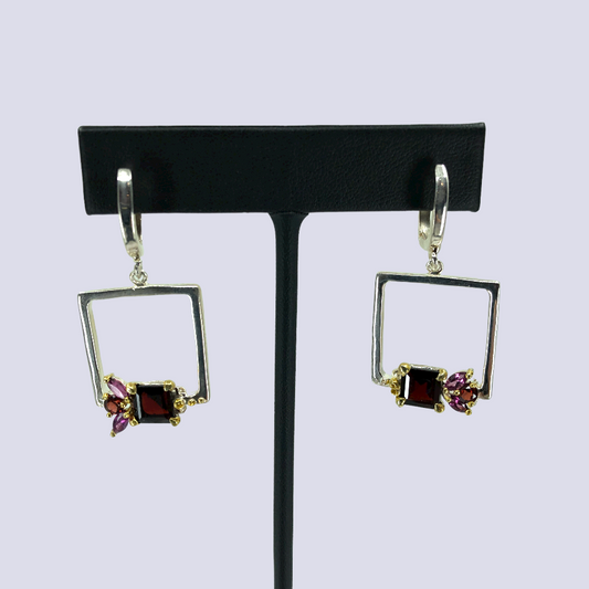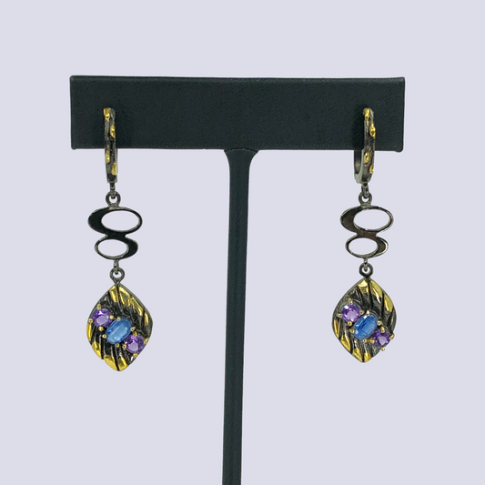 Silver Dangle Earrings With Tanzanite And Blue Topaz