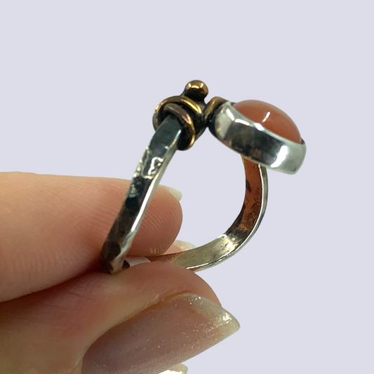 925 Oxidized Silver Ring With Peach Moonstone, Size 7