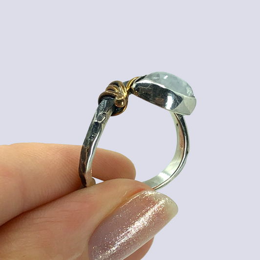 925 Oxidized Silver Ring With Moonstone, Size 7