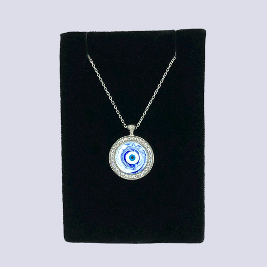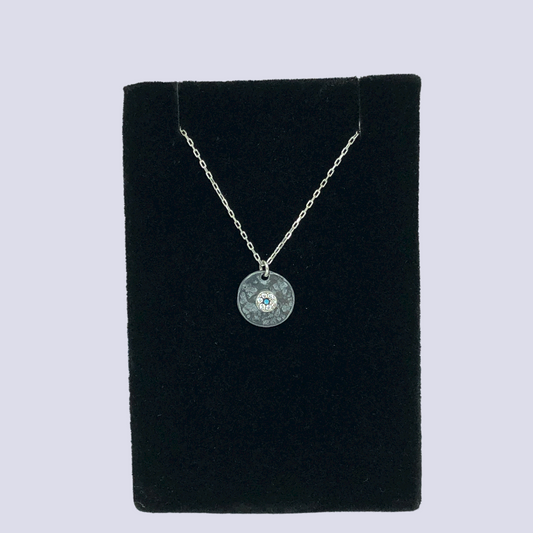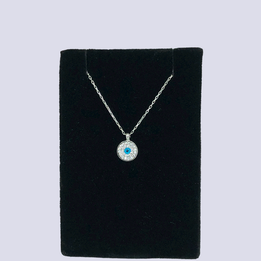 Evil Eye Oxidized Hammered Sterling Silver Necklace