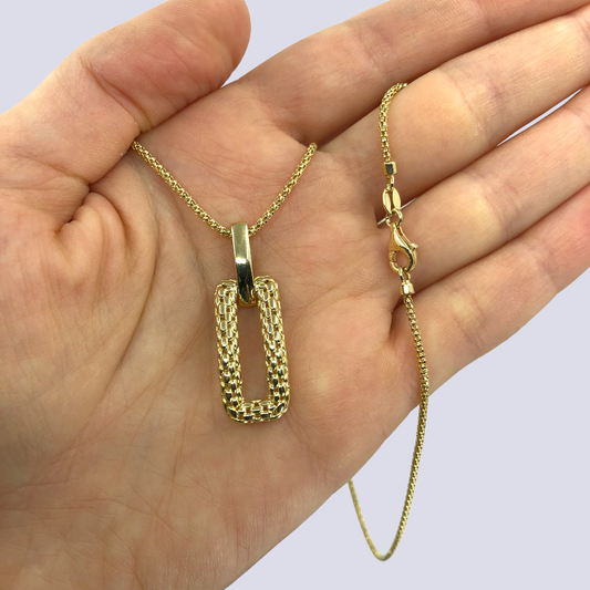 Solid 14K Yellow Gold Basket Drop Caviar Necklace