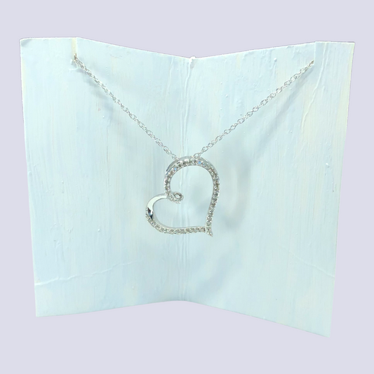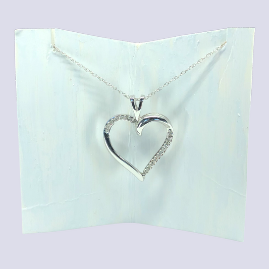 Solid 10K White Gold Heart Necklace Inlaid With Diamonds