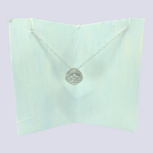 Rhombus Shape Necklace Inlaid With Diamonds in 10K Solid White Gold