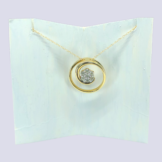 Solid 10K Yellow Gold Swirl Shape Necklace With Diamonds
