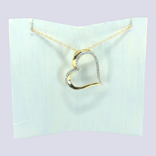 Solid 10K Yellow Gold Heart Shape Necklace With Diamonds