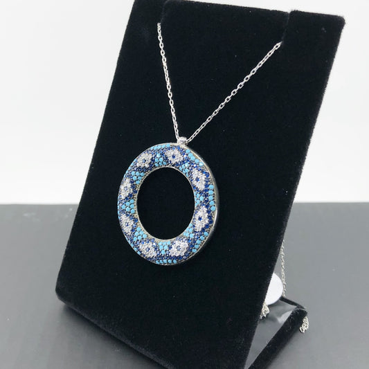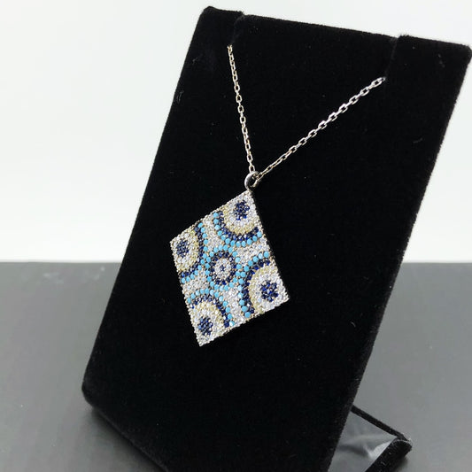 Evil Eye Mosaic Style Sterling Silver Necklace
