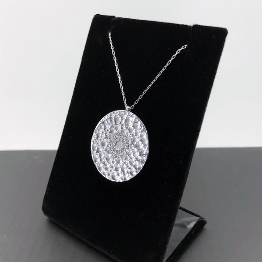 Evil Eye Hammered Disc Necklace, Sterling Silver and Micropave CZ