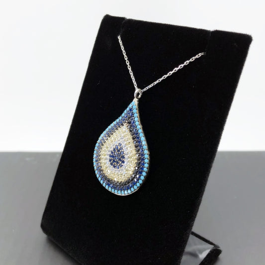 Evil Eye Mosaic Style Sterling Silver Teardrop Necklace