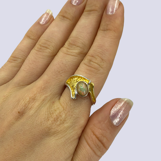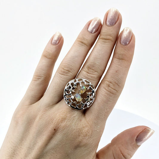 Ethiopian Opal Ring in Sterling Silver, Size 8