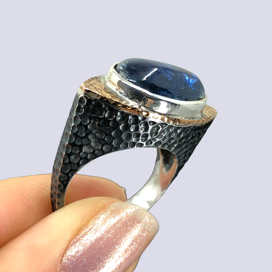 925 Oxidized Silver Ring With Kyanite, Size 7.5