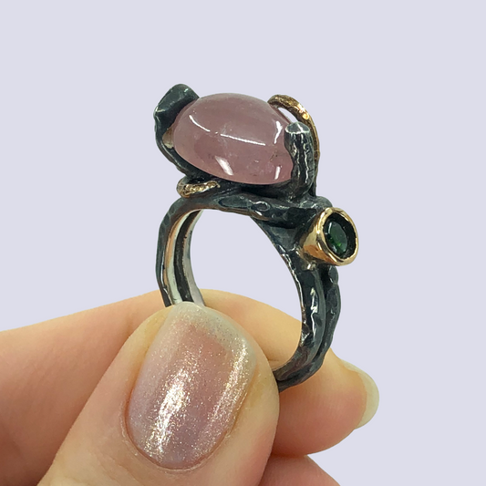 925 Oxidized Silver Ring With Rose Quartz, Size 7