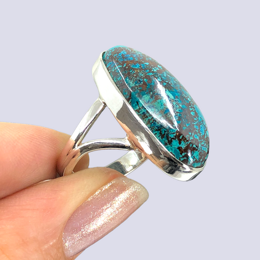 Sterling Silver Ring With Azurite Chrysocolla, Size 7