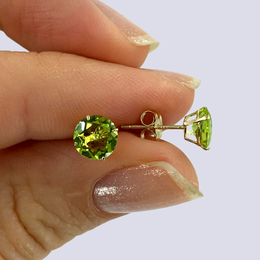 14K Yellow Gold Stud Earrings Inlaid With Peridot